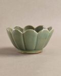 透き通った青磁が美しい、輪花形の鉢。とても優雅な立ち姿です。