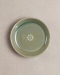 淡い発色の青磁が美しい小皿。象嵌で梅の花が描かれています。