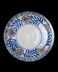 染付と色絵で、大胆な花文が描かれた大皿です。