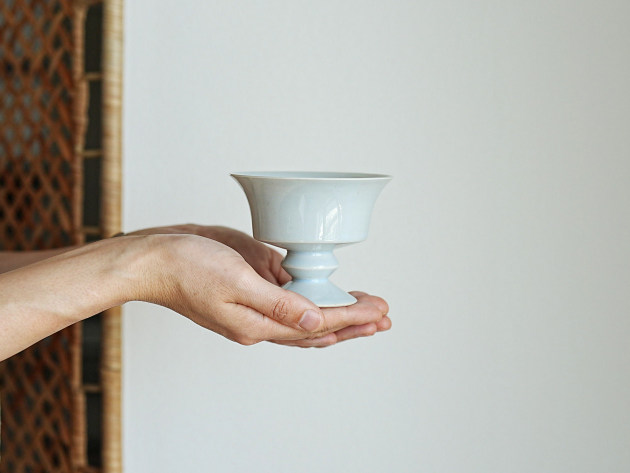 美しいフォルムの台付き鉢。アイデア次第でいろいろな使い方ができそうです。