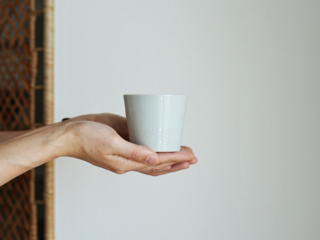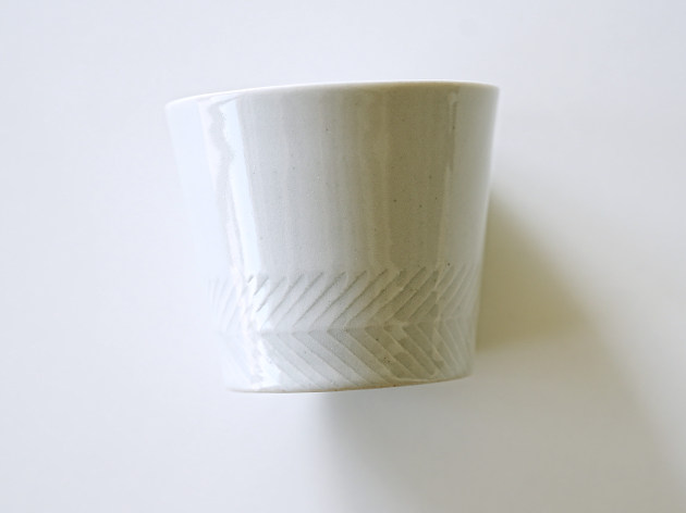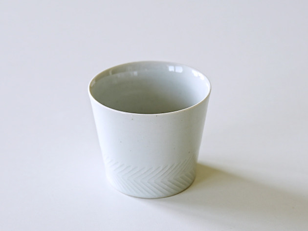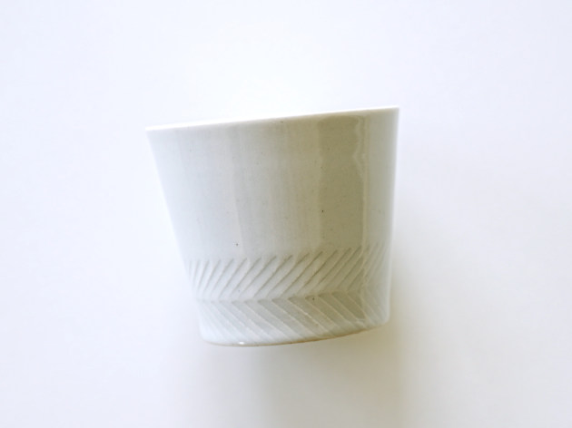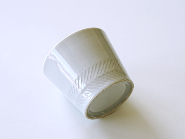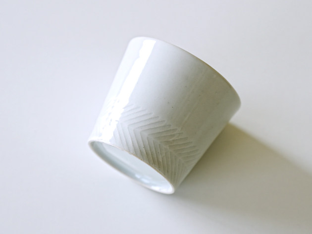 丁寧に削られたしのぎ文様が印象的な、上品な白磁の蕎麦猪口です。