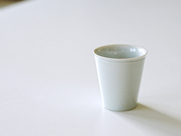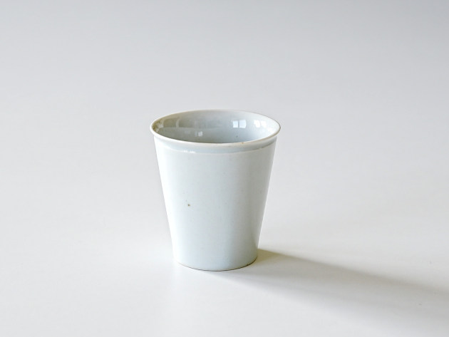 ほんの少しだけ端反ったフォルムが印象的な、上品な白磁の猪口です。