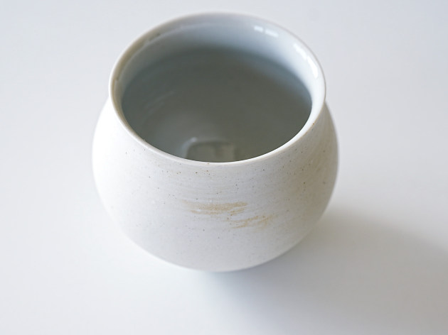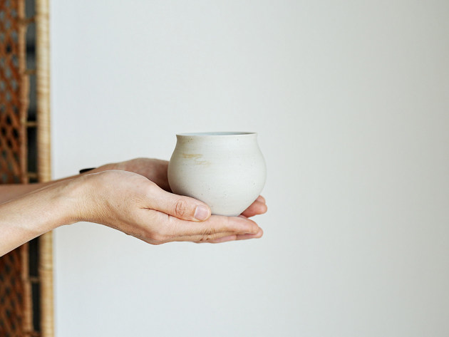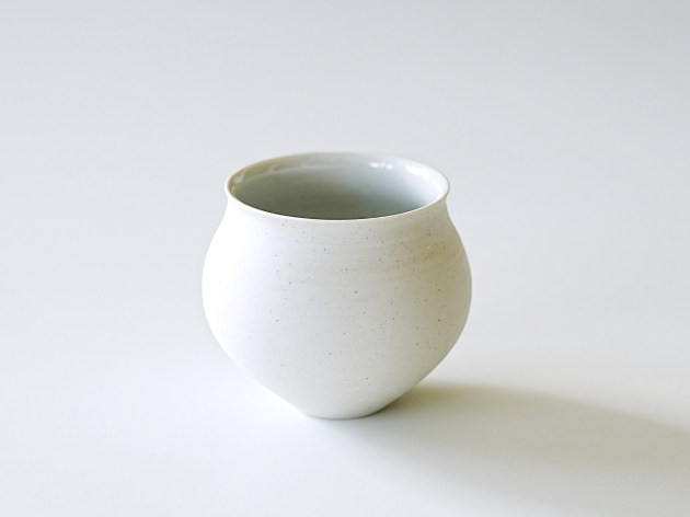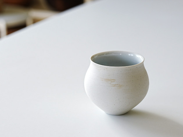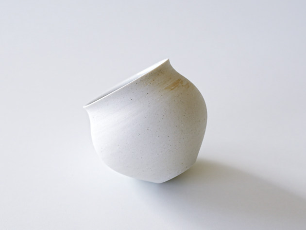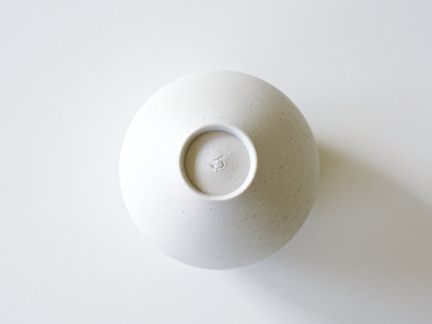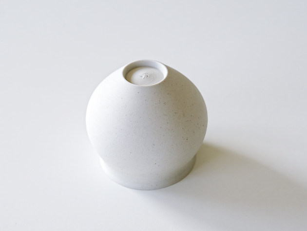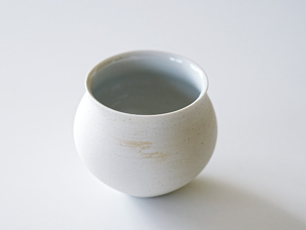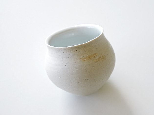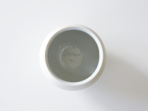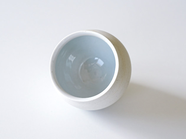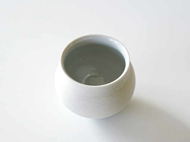 丸くコロンとした形がなんとも可愛らしい、白磁のカップです。外側は無釉で、さらっとした手触り。