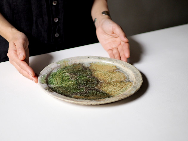 表側はたっぷりと掛けられた釉薬が分厚いガラス質になっていて、キラキラと美しいです。