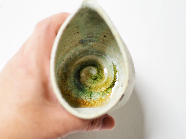 底の部分には釉薬がガラス質に結晶し、外側とは異なる美しい景色となっています。