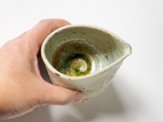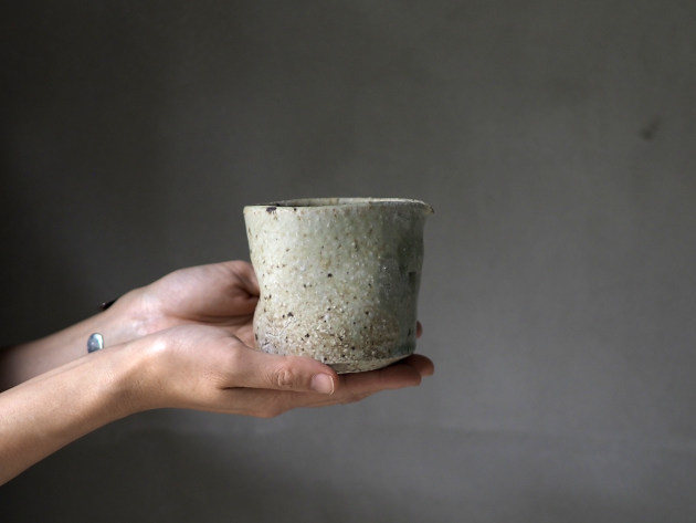 荒々しいテクスチャの片口。でも手触りはさほど粗くありません。