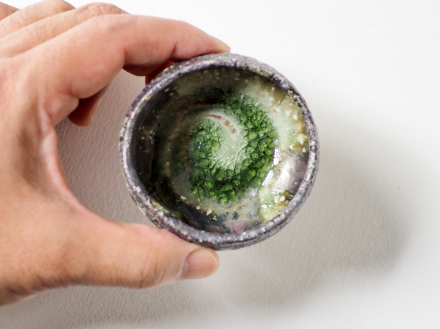 底の部分には釉薬がガラス質に結晶し、外側とは異なる美しい景色となっています。