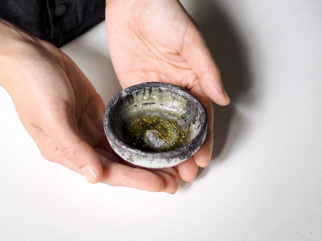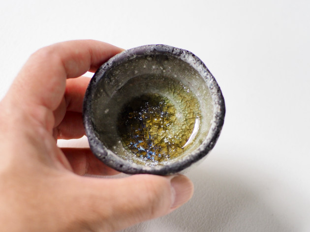 底の部分には釉薬がガラス質に結晶し、外側とは異なる美しい景色となっています。