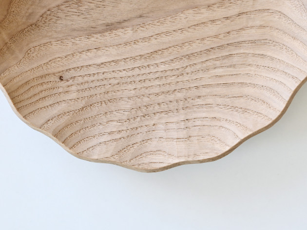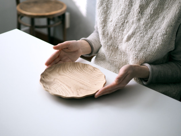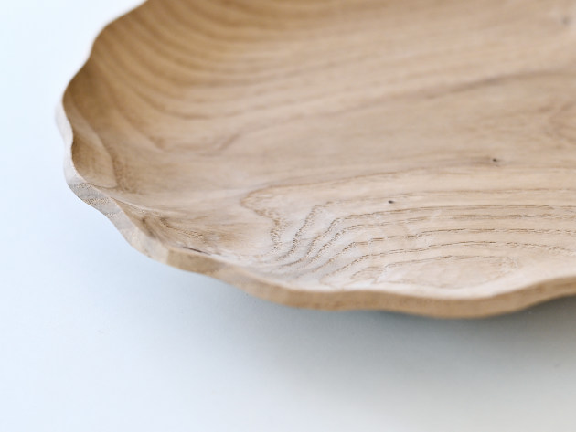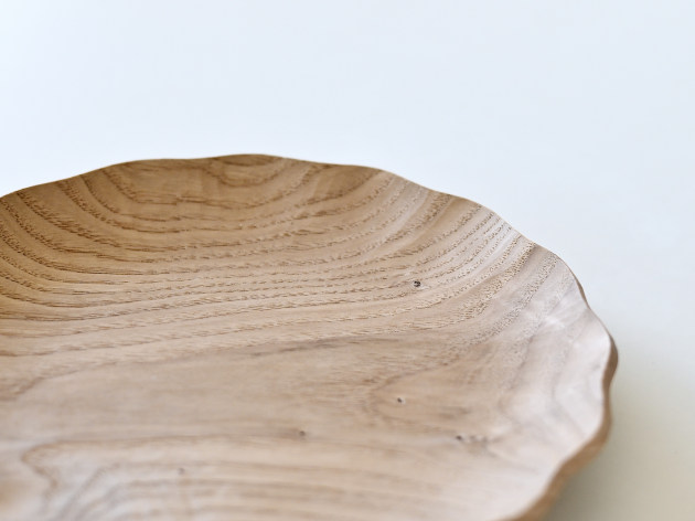 一枚ずつ手で刳り出して作った、波のようなドレープのある皿。とても手間のかかる仕事です。 優雅な形ですが、木のうつわは丈夫です。カジュアルに毎日お使いください。 ※多少の節や虫食いの穴がありますが、うつわの個性としてお楽しみください。 ■サイズ:径21.0cm×高さ2.8cm ※色や木目がひとつずつ異なること、また節が含まれている場合があることをご了承下さい。