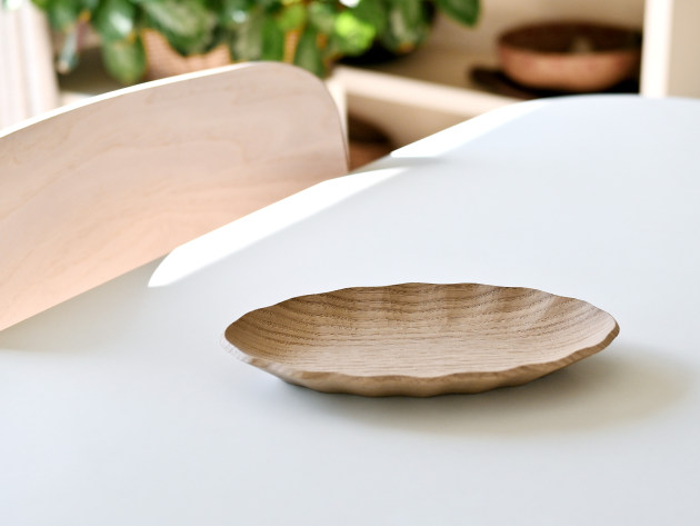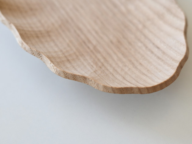 一枚ずつ手で刳り出して作った、波のようなドレープのある皿。とても手間のかかる仕事です。 優雅な形ですが、木のうつわは丈夫です。カジュアルに毎日お使いください。 ※多少の節や虫食いの穴がありますが、うつわの個性としてお楽しみください。 ■サイズ:ヨコ22.8cm×タテ13.5cm×高さ2.8cm ※色や木目がひとつずつ異なること、また節が含まれている場合があることをご了承下さい。