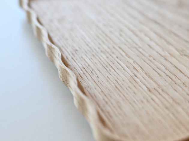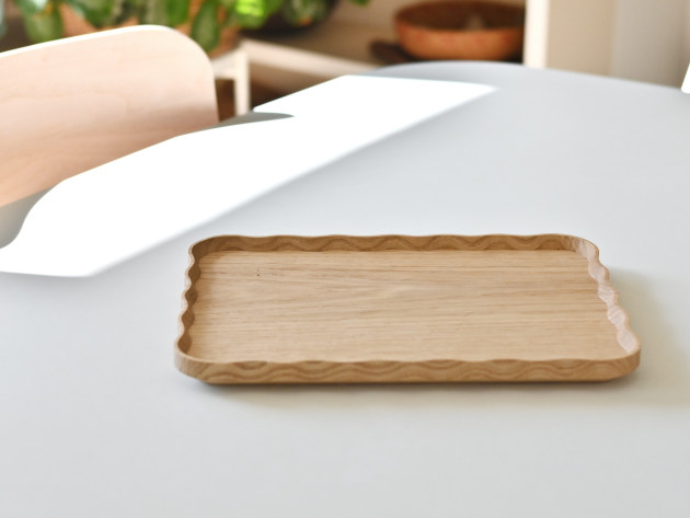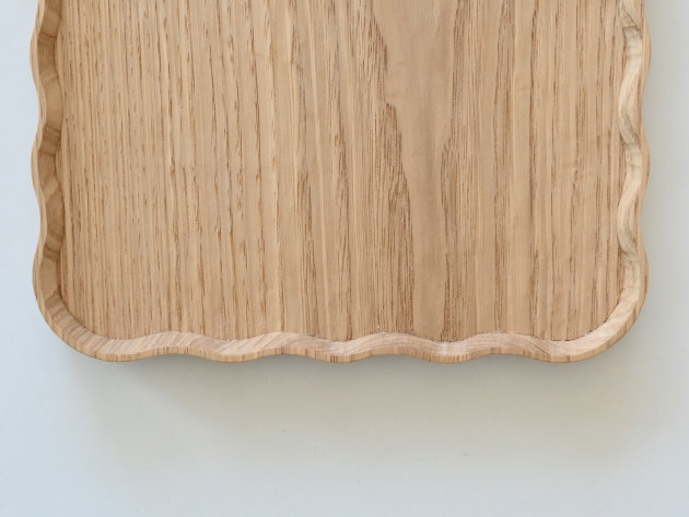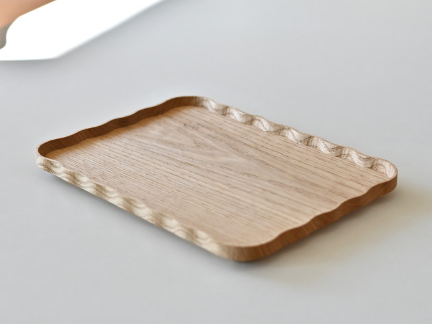一枚ずつ手で刳り出して作った、波のようなドレープのある角盆。 とても手間のかかる仕事です。裏側まで美しい。 お茶の時間や晩酌セットに。お皿として、料理を盛りつけていただいても結構です。 ※多少の節や虫食いの穴がありますが、うつわの個性としてお楽しみください。 ■サイズ:ヨコ28.8cm×タテ21.0cm×高さ2.2cm ※色や木目がひとつずつ異なること、また節が含まれている場合があることをご了承下さい。