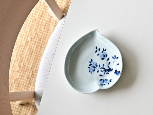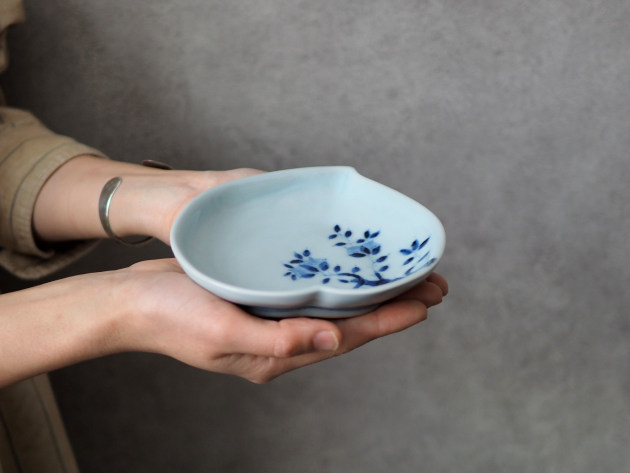 桃の形の中に桃の絵を描いた、まさに桃尽くしのお皿。