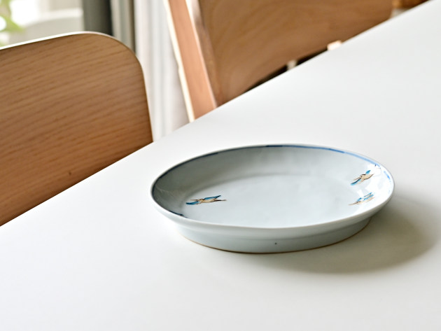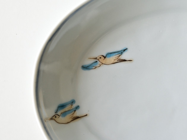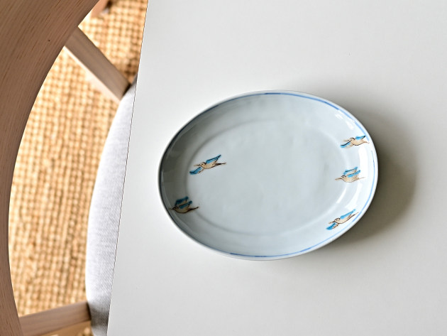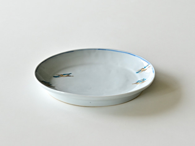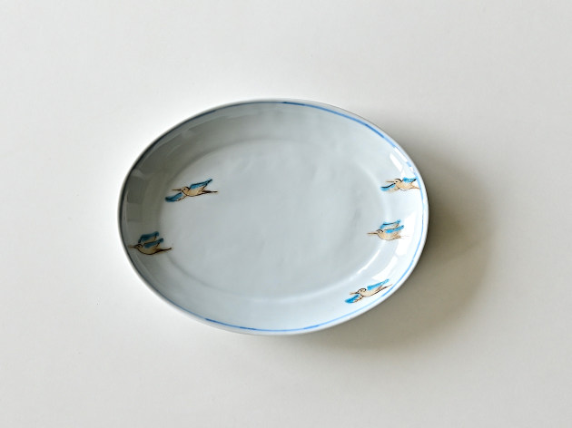 五羽の千鳥が描れた、なんとも可愛らしい楕円皿。