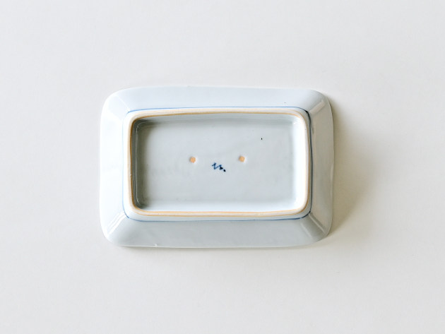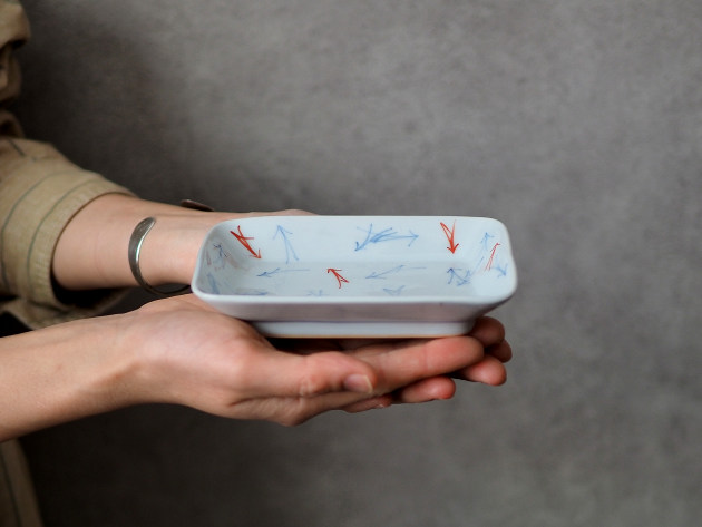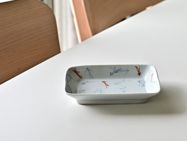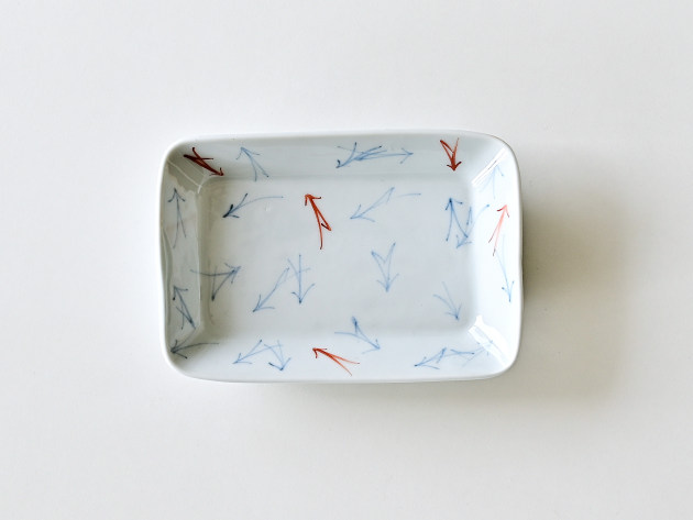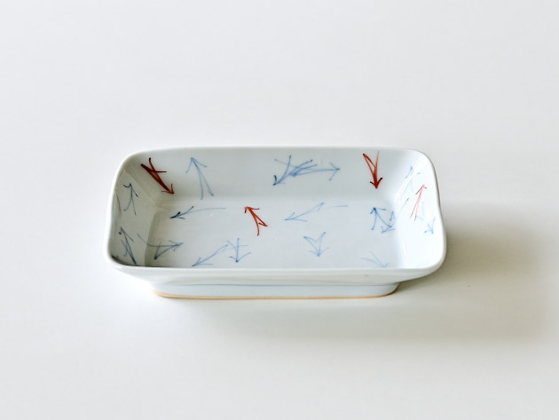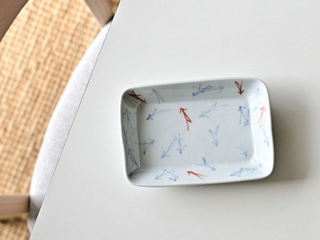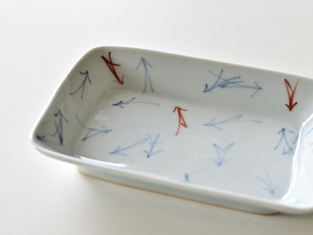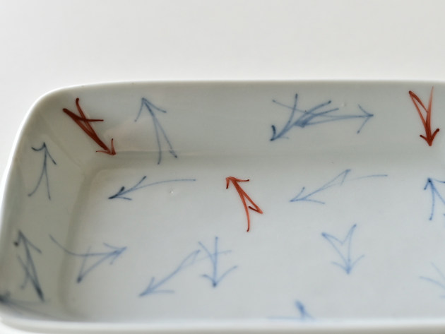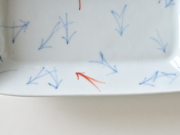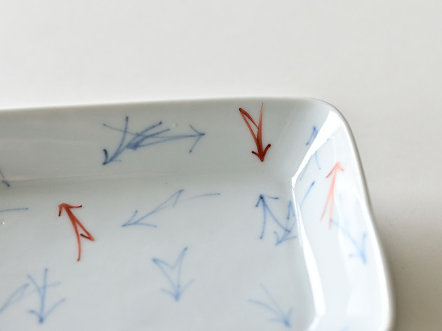 染付と赤絵でたくさんの松葉が描かれた、小粋な角皿。