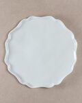 花びらのような優雅な縁の形が印象的な、磁器の平皿です。