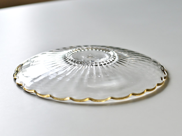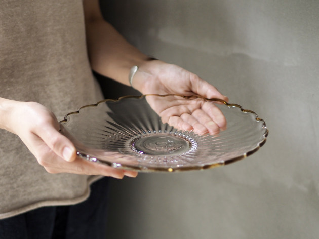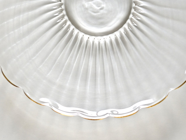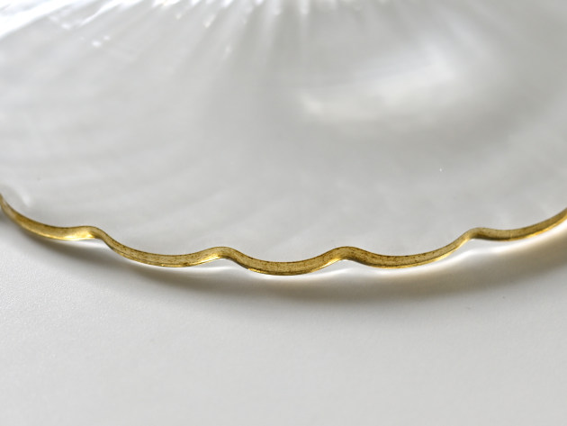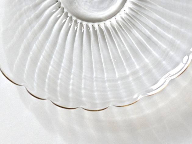 モールの跡がゆるやかな陰影を作る、輪花形のお皿です。