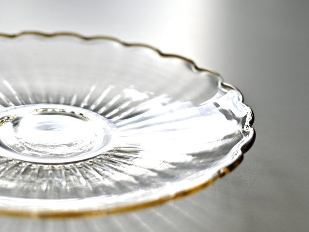口辺には琥珀色のガラスで縁取りがされています。