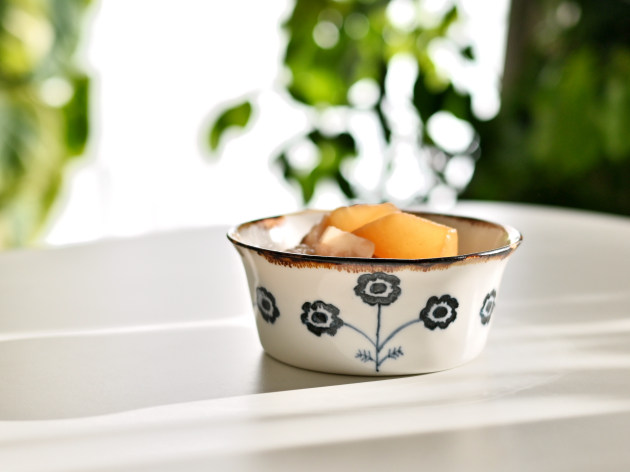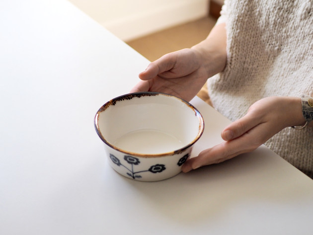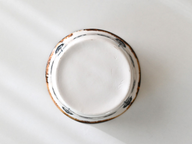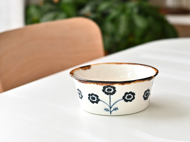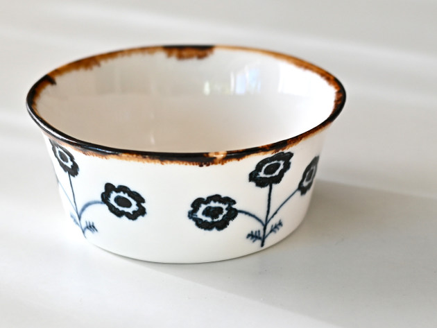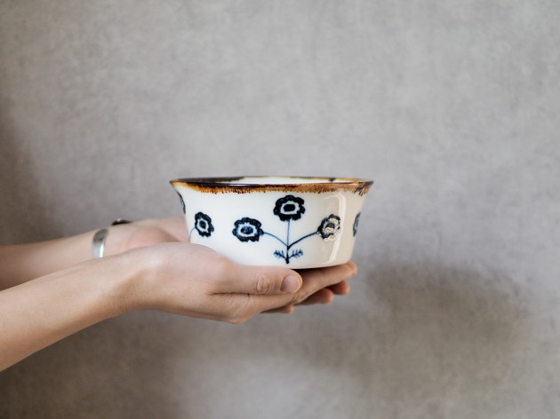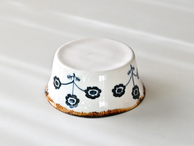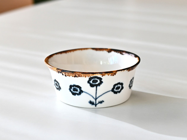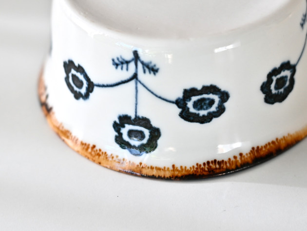 印判(いんばん)と呼ばれるスタンプで、アネモネの文様を捺した磁器の鉢です。
