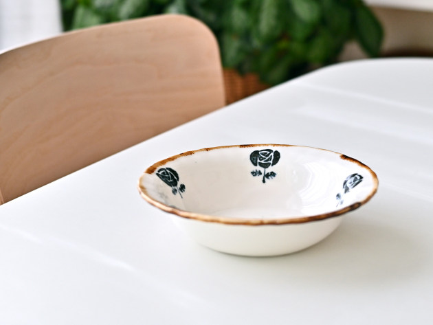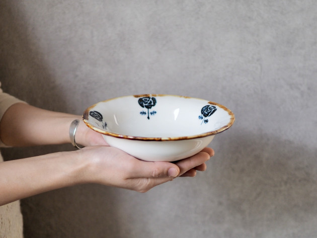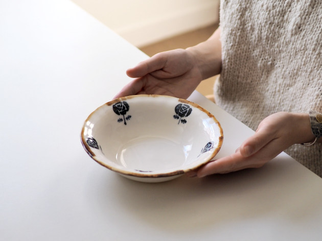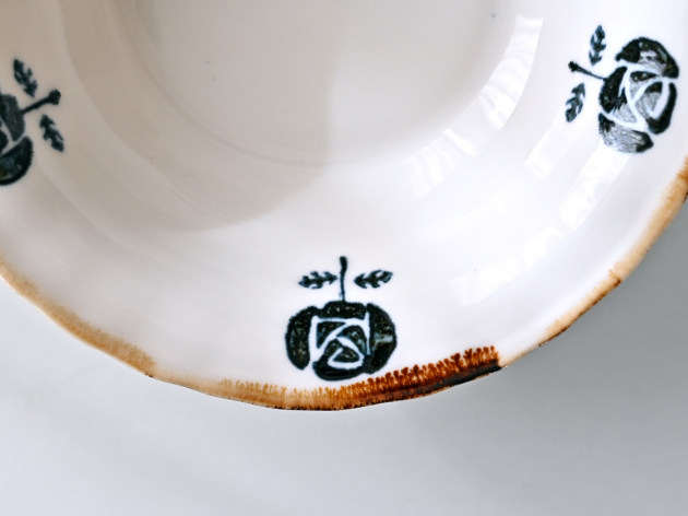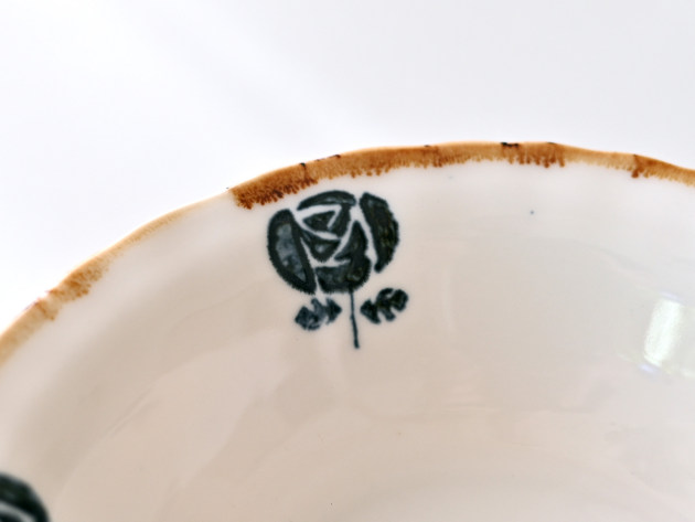 磁器に印判(いんばん)と呼ばれるスタンプで、アネモネの文様を捺したボウルです。