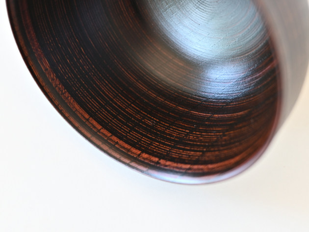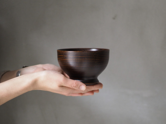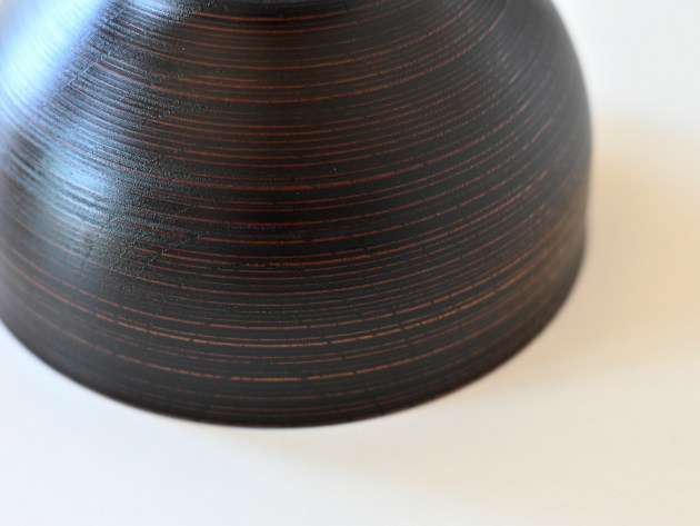 丈夫なケヤキの木でできた、拭き漆の椀です。ごく細かい筋目が挽いてあるため、傷が付きにくくなっています。