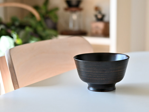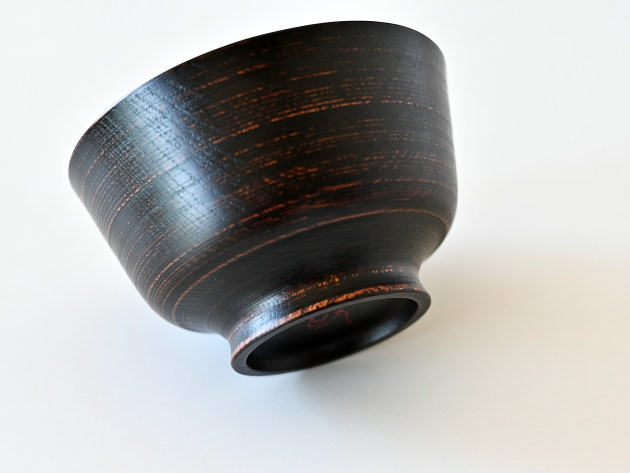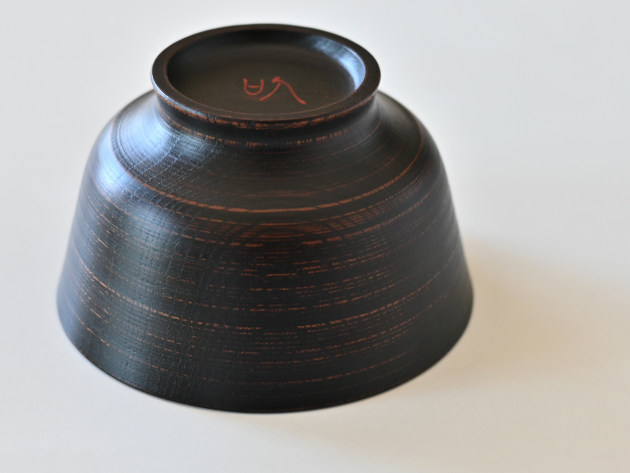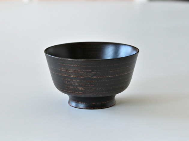 丈夫なケヤキの木でできた、拭き漆の椀です。ごく細かい筋目が挽いてあるため、傷が付きにくくなっています。