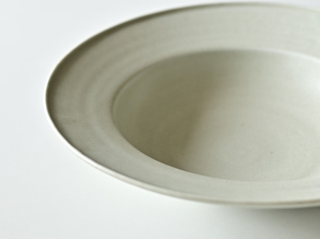 緑のような、ベージュのような、不思議な発色の磁器です。