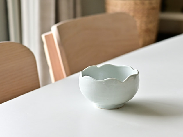 フリルのような口辺が可愛らしい、丸形の小鉢。