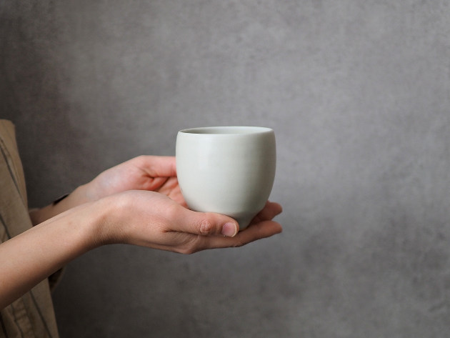 とろんとした釉薬がやわらかな雰囲気です。やや緑がかった発色。 容量は八分目で約200cc。フォルムが美しく、お茶にもお酒にもよくあいます。 ※ピンホール(小さな穴)、鉄粉(小さな黒い点)などがありますが、うつわの個性としておたのしみください。 ■サイズ:口径8.0cm×高さ8.5cm 200㏄ ※手作りの為、大きさ、形、色がひとつずつ多少異なることをご了承下さい。