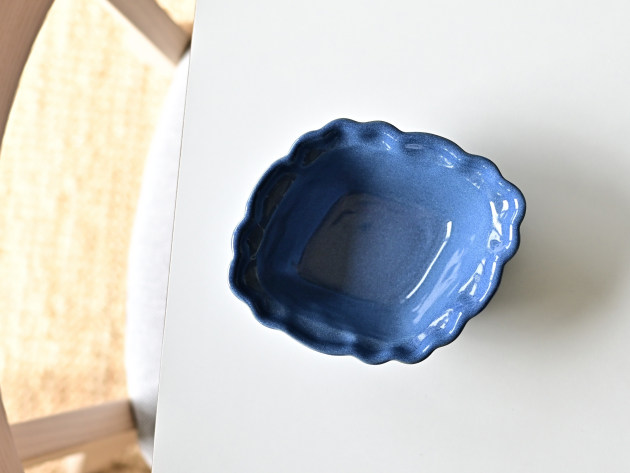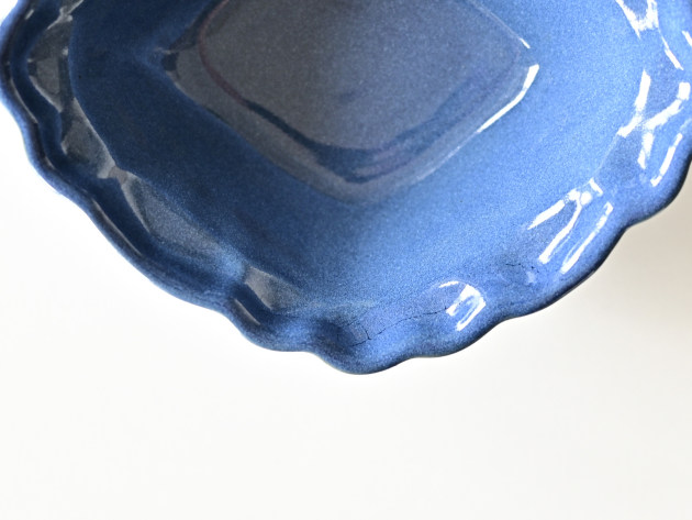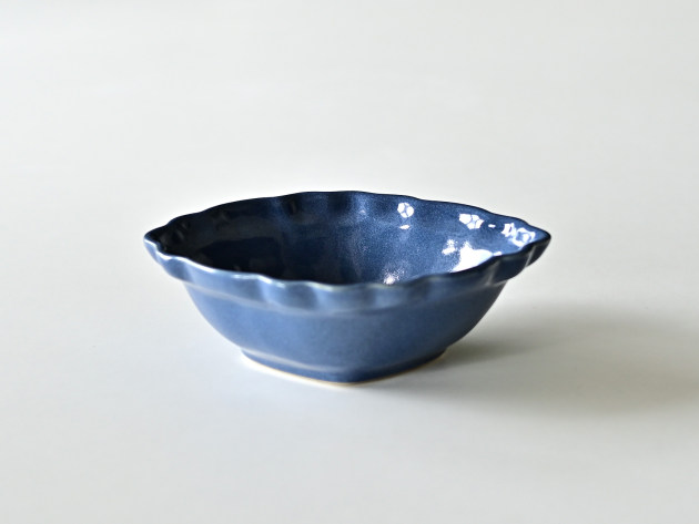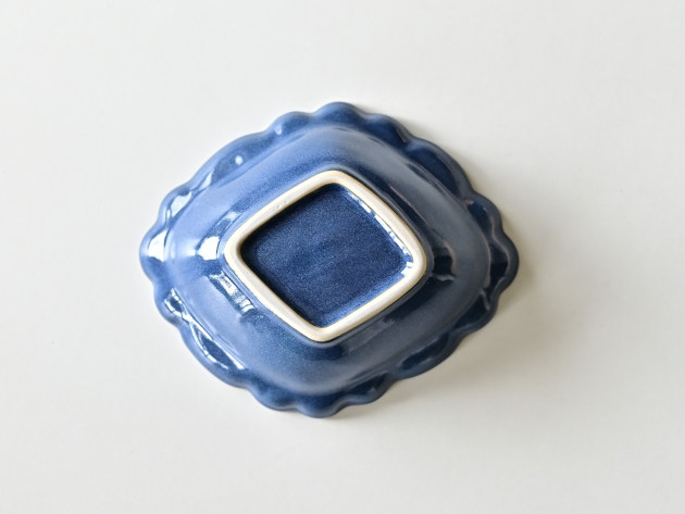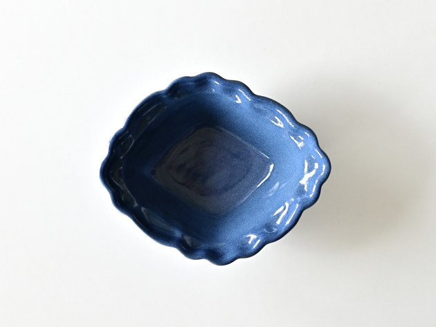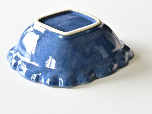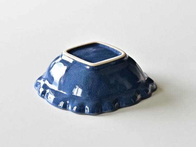 とろんとした釉薬がやわらかな雰囲気の、菱形の輪花鉢です。