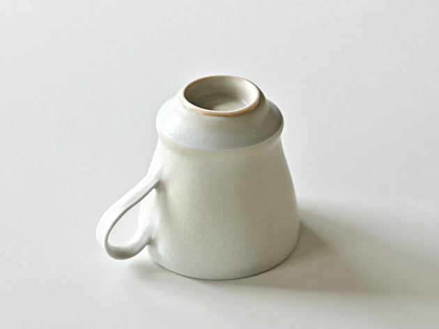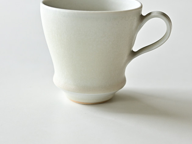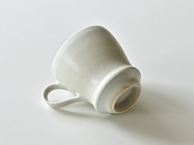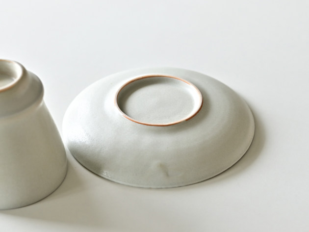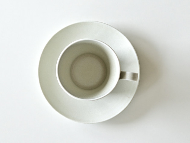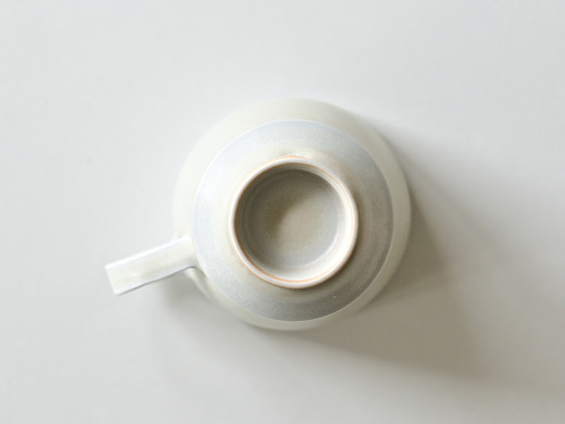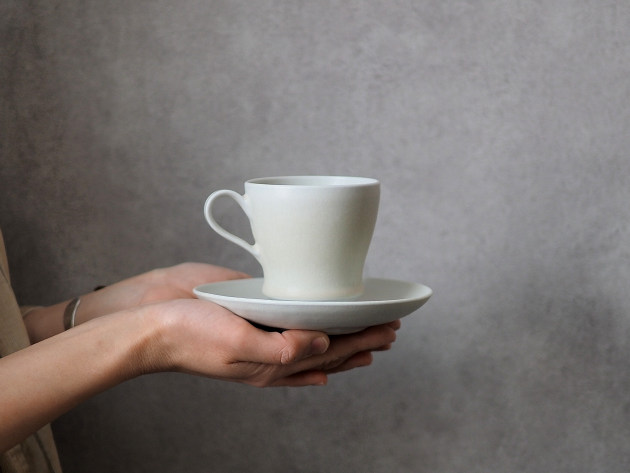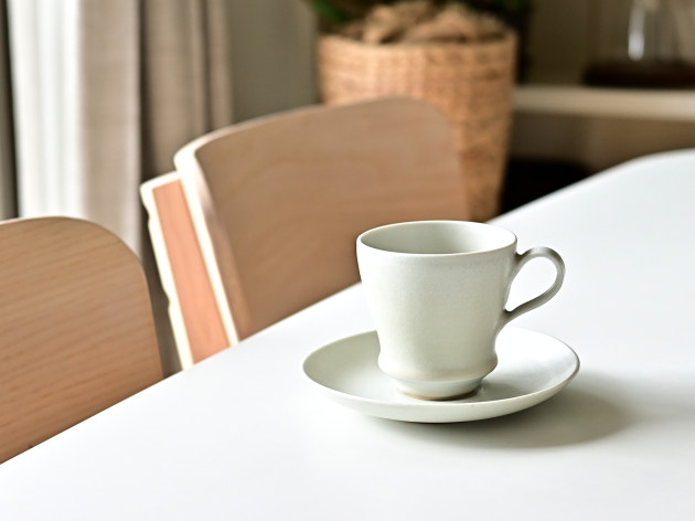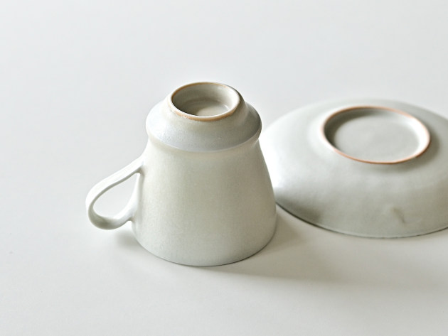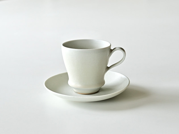 デミタスカップとソーサーのセット。とろんとした釉薬がやわらかな雰囲気です。やや緑がかった発色。 容量は八分目で約130cc。カップのフォルムの美しさが際立っています。 ※ピンホール(小さな穴)、鉄粉(小さな黒い点)などがありますが、うつわの個性としておたのしみください。 ■サイズ:【カップ】径8.2cm×高さ8.3cm(取っ手含まず) 【ソーサー】径14.5cm×高さ2.5cm ※手作りの為、大きさ、形、色がひとつずつ多少異なることをご了承下さい。