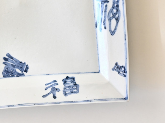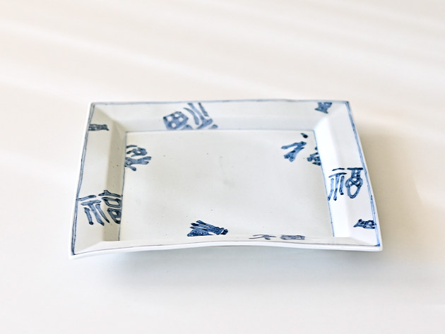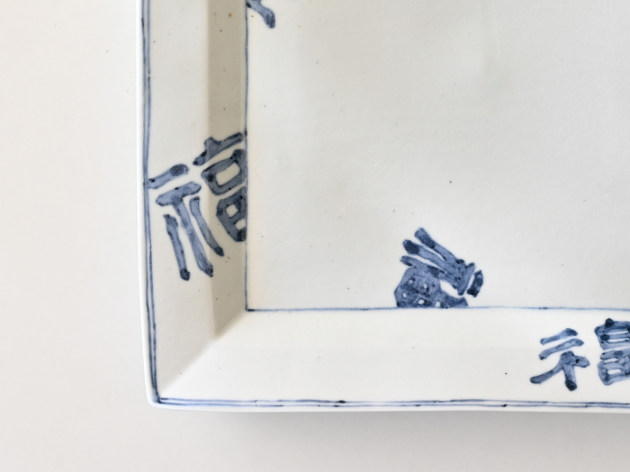 様々な書体で「福」の字が描かれた、とてもお目出たいうつわ。古物のような趣きがあります。