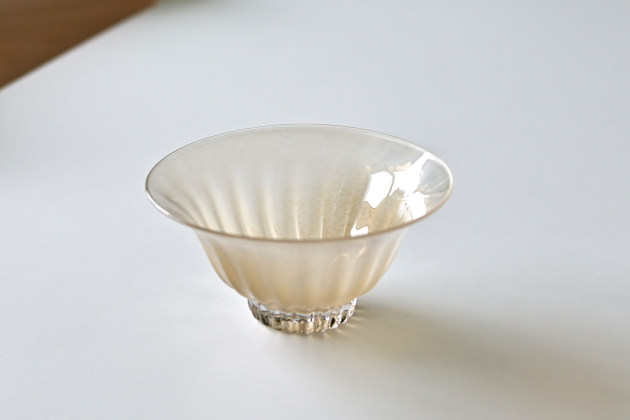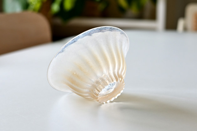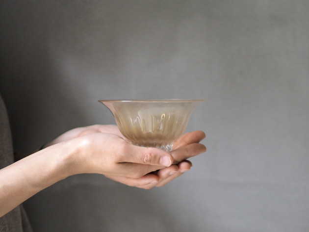 パウダーをまぶしたような、くすんだ発色のDustyシリーズ。 こちらは、モール跡が印象的な小鉢です。一人分の酢の物などに。 手作りのガラスは、サイズや形、発色にばらつきがあります。 また、ごく小さな気泡、鉄粉、微細な傷なども見られます。 これらの点をご了承のうえ、ご注文くださいますようお願いいたします。 ■サイズ:径12.5cm×高さ6.0cm※こちらの商品は、大きさ、形、色の濃さに個体差があります。ご了承の上ご注文ください。