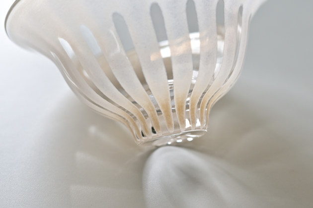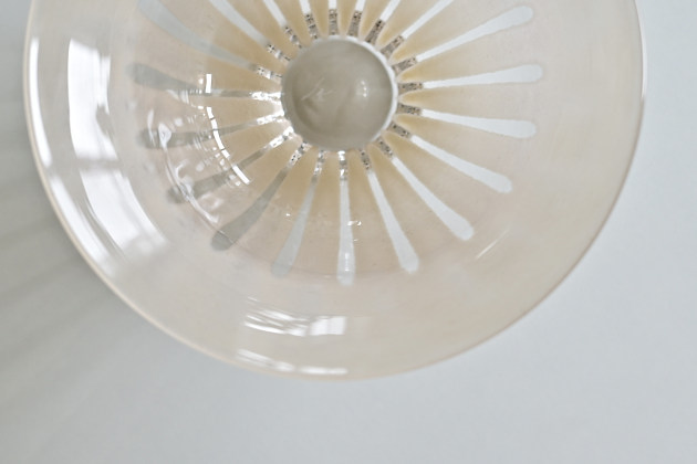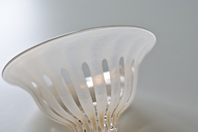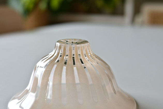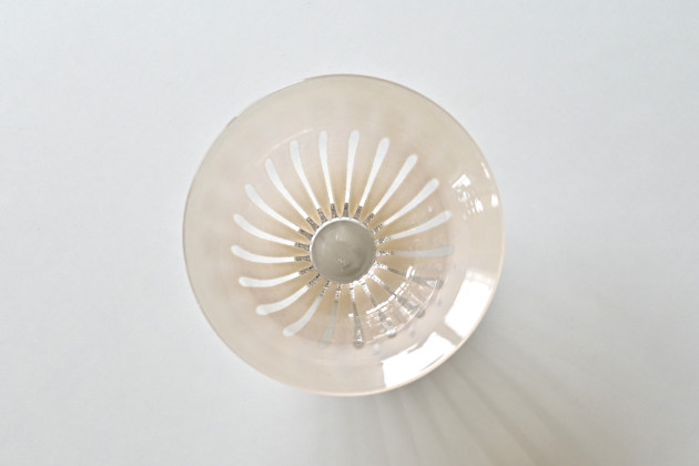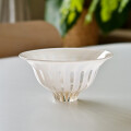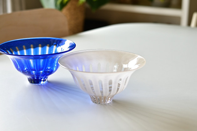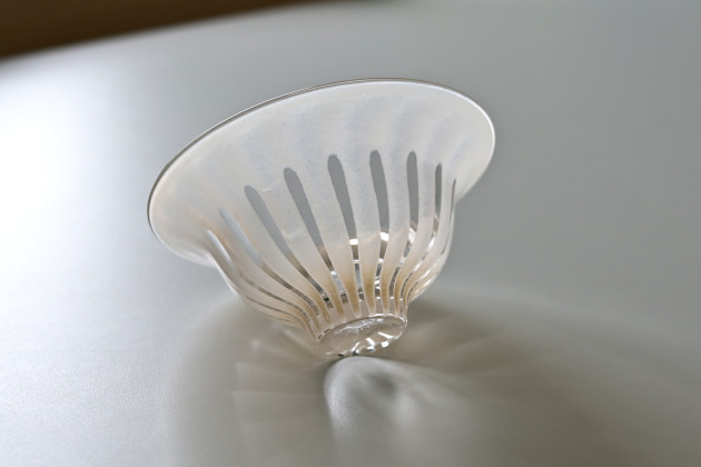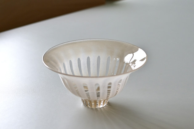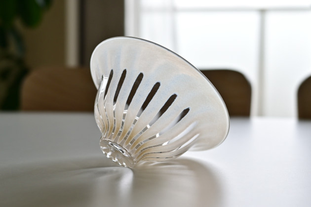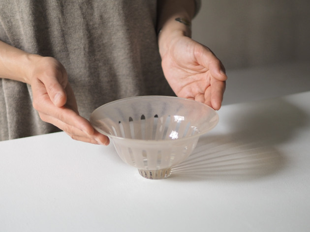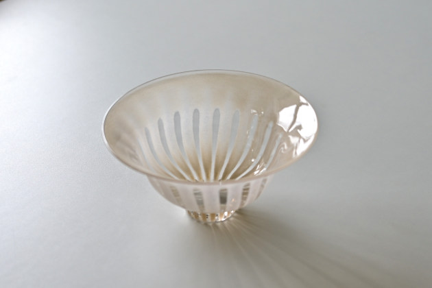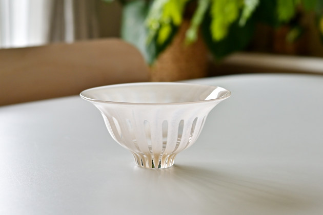 古い町屋に見られる連子格子からヒントを得て作られた、renシリーズ。 こちらは、朝顔のような優美なフォルムの鉢です。スリットの影もきれいです。 サイズや形、発色、スリットの長さ等にばらつきがあります。 また、ごく小さな気泡、鉄粉、微細な傷なども見られます。 これらの点をご了承のうえ、ご注文くださいますようお願いいたします。 ■サイズ:径15.0cm×高さ7.5cm※手作りの為、大きさ、形、色ががひとつずつ多少異なることをご了承下さい。