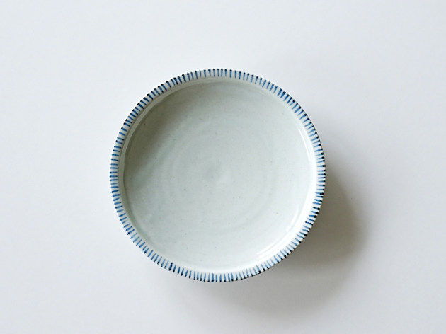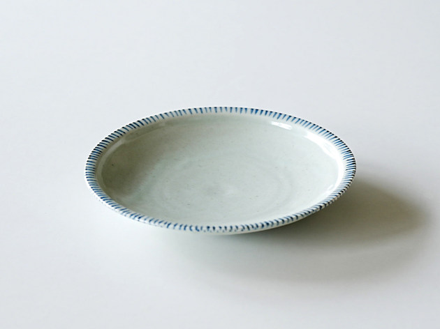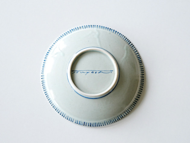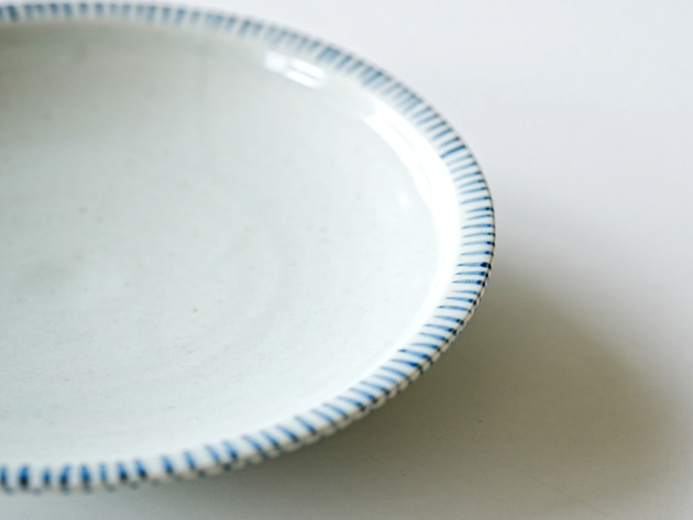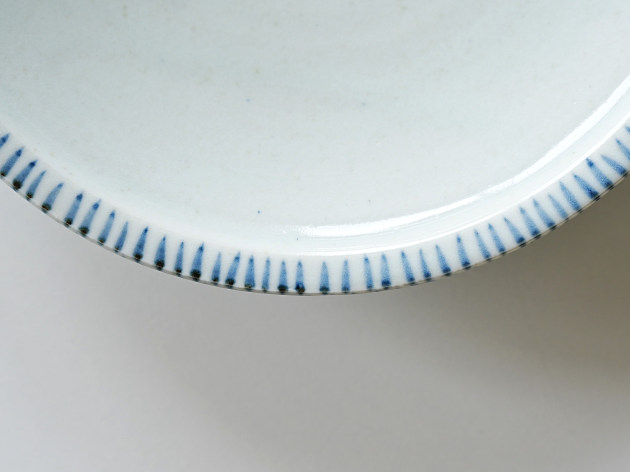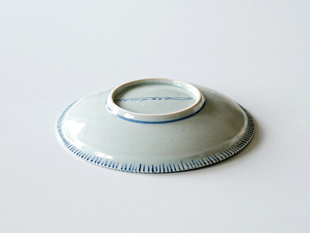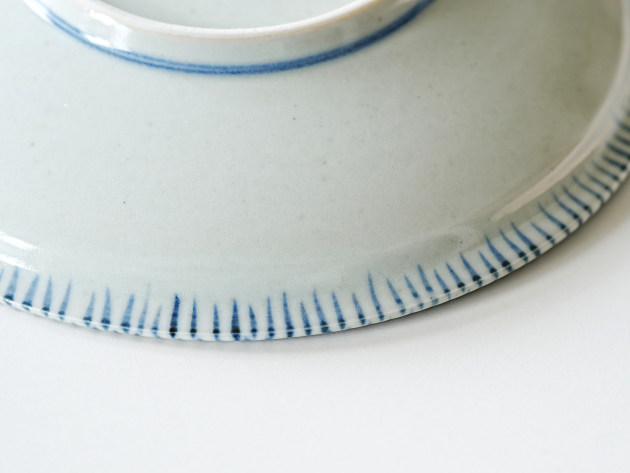 リムの裏と表に、呉須で麦わら文が描かれた七寸皿。