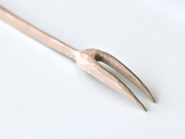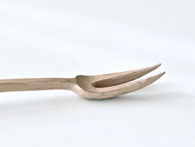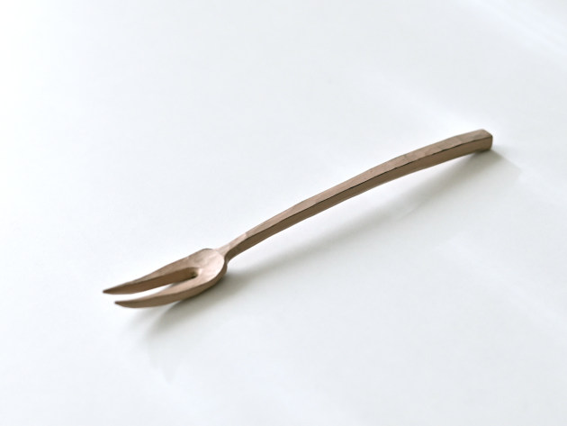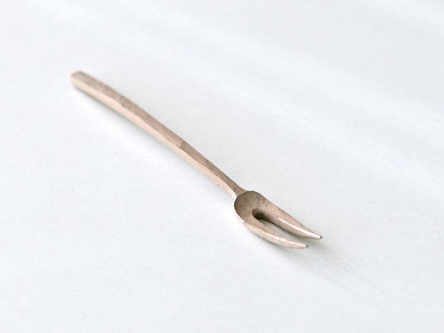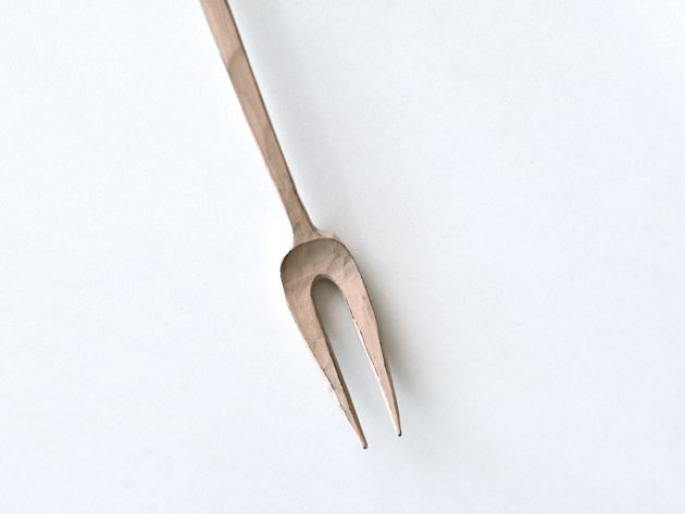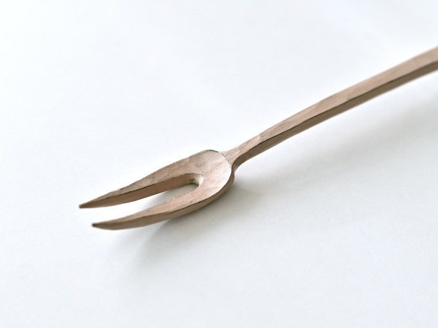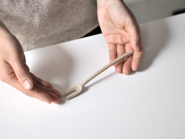 桜の木を手で削り出して作った小さなフォークです。白漆が塗られています。