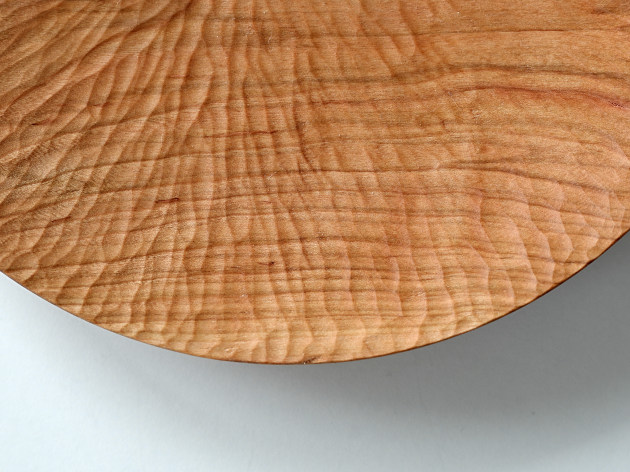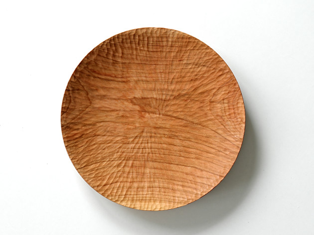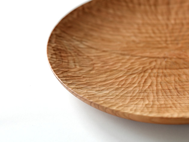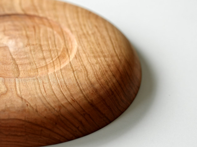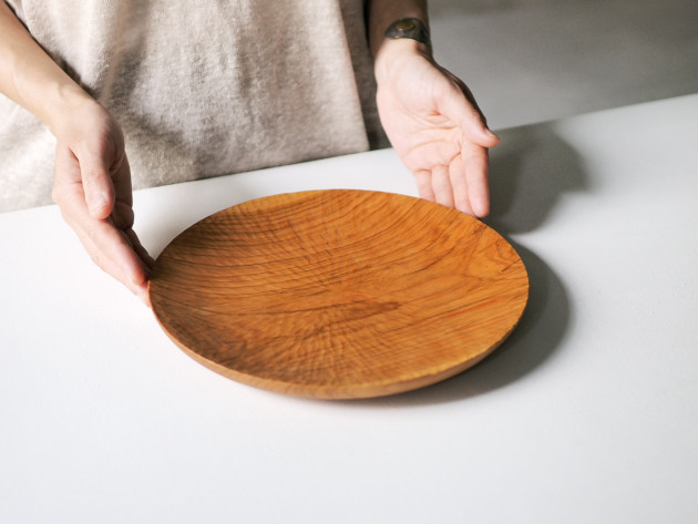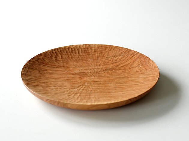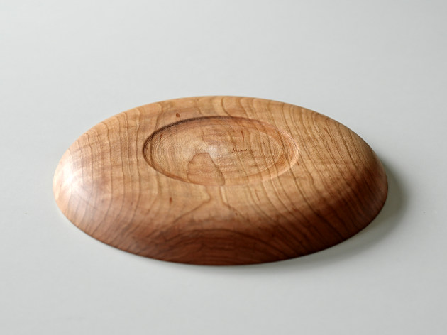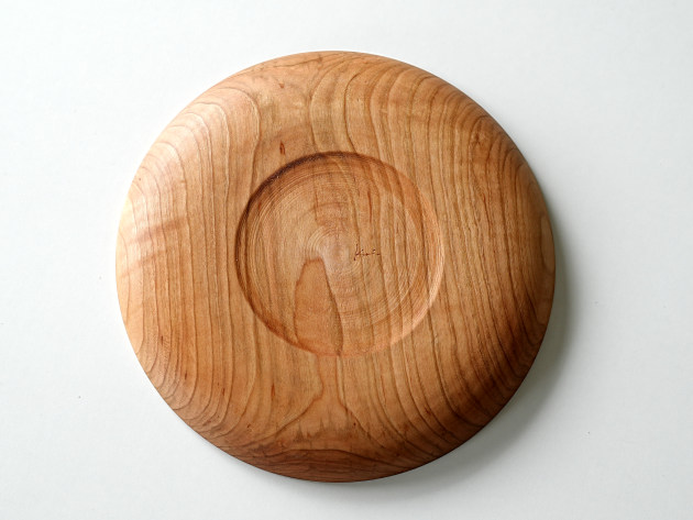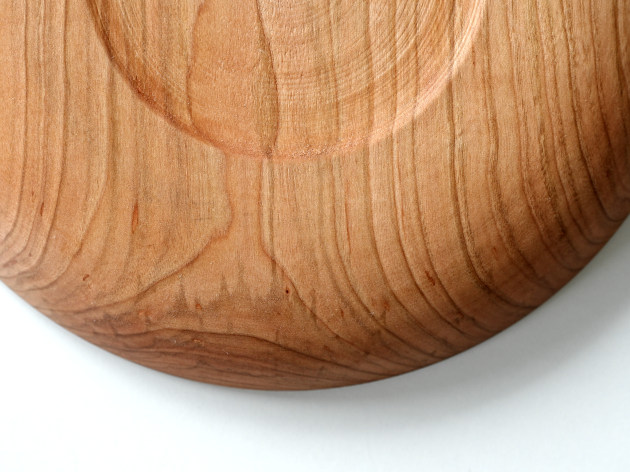 サクラの木をオイルフィニッシュで仕上げた丸皿。手彫りの跡に温かみを感じます。