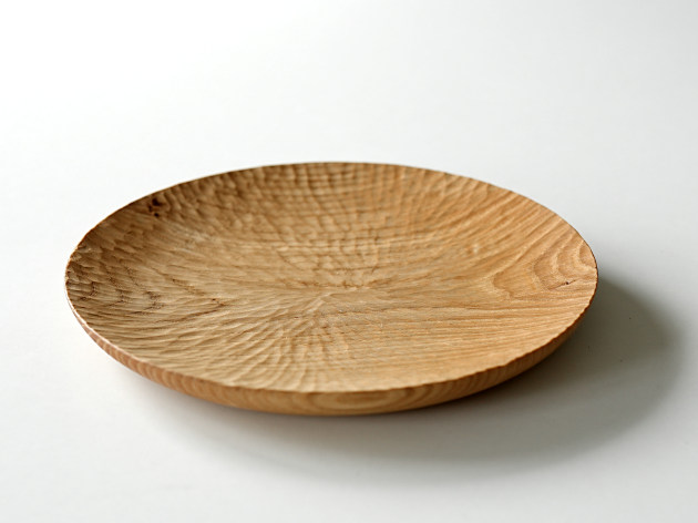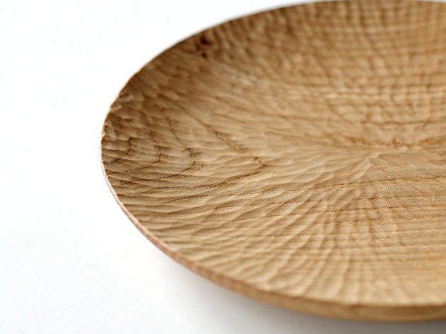 クリの木をオイルフィニッシュで仕上げた丸皿。手彫りの跡に温かみを感じます。 (↑の画像、2枚目は店主が数年間使用した私物です) 普通の食器と同じように使えます。カサつきが気になってきたら、オイル(クルミ油、亜麻仁油、えごま油がおすすめです)を薄く塗ってください。 ■サイズ:径24.0cm×高さ2.5cm ※手作り、天然素材の為、大きさ、形、色、木目がひとつずつ多少異なることをご了承下さい。