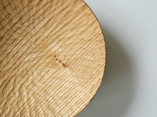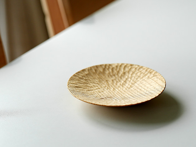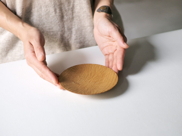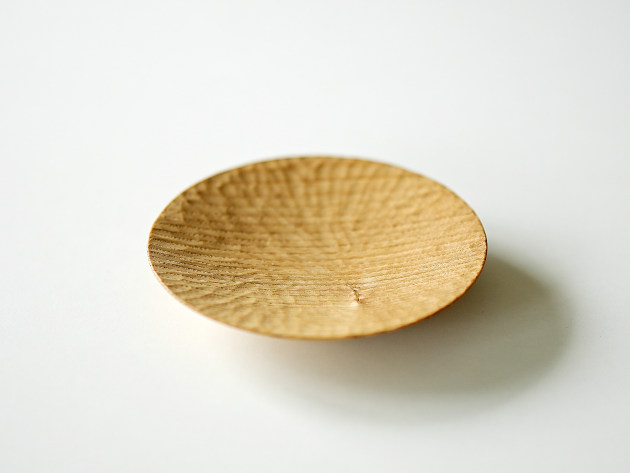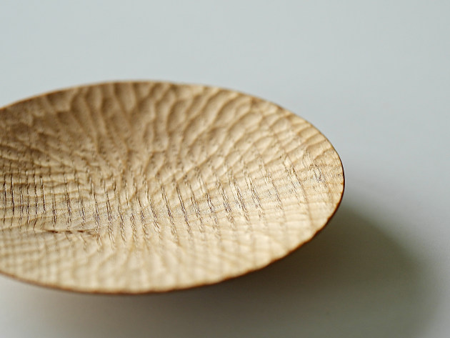 クリの木をオイルフィニッシュで仕上げた丸皿。手彫りの跡に温かみを感じます。