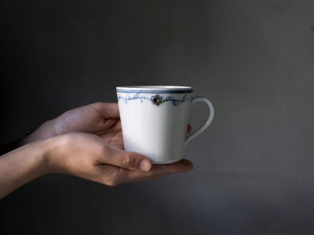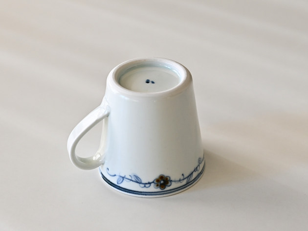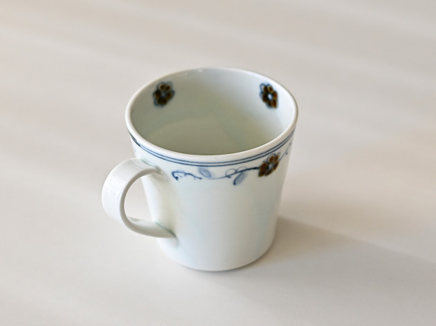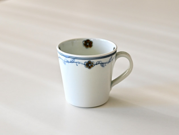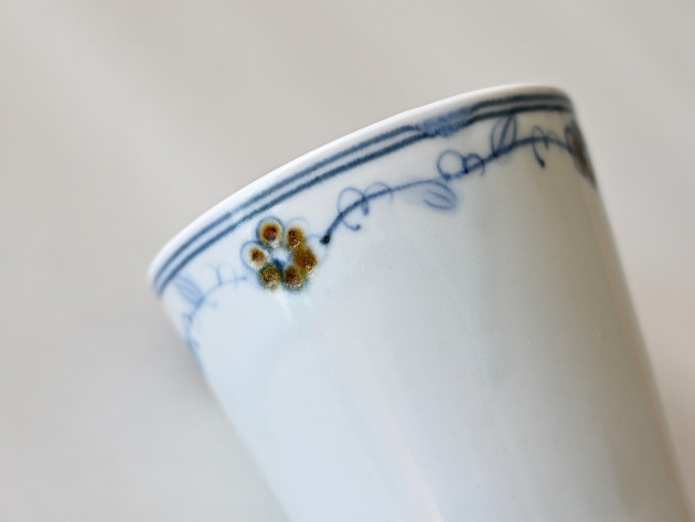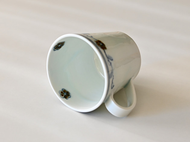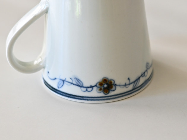 呉須と鉄絵で控えめに描かれた花唐草が、何とも可愛らしいマグカップです。
