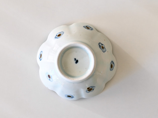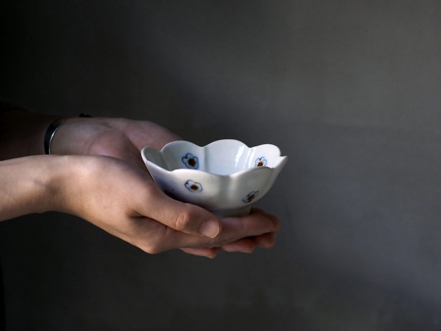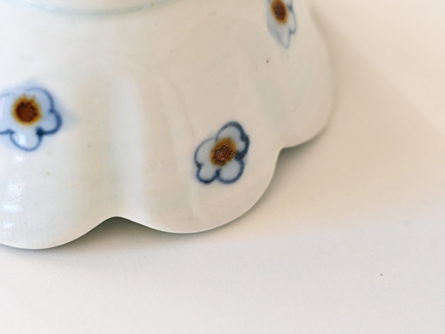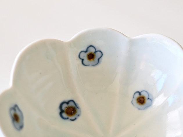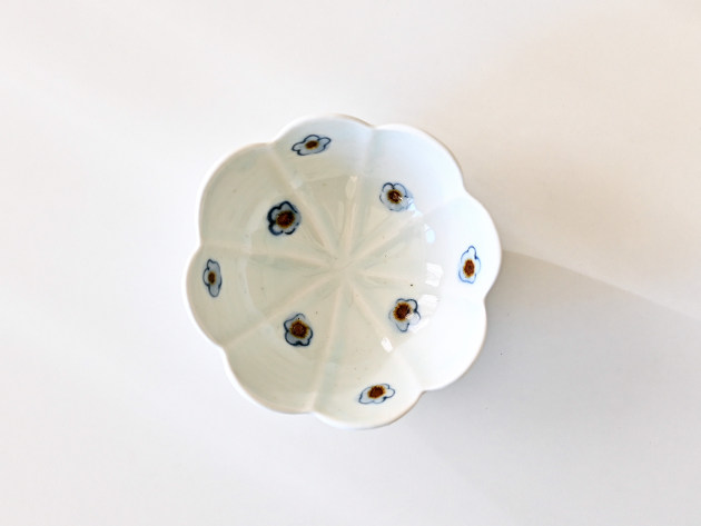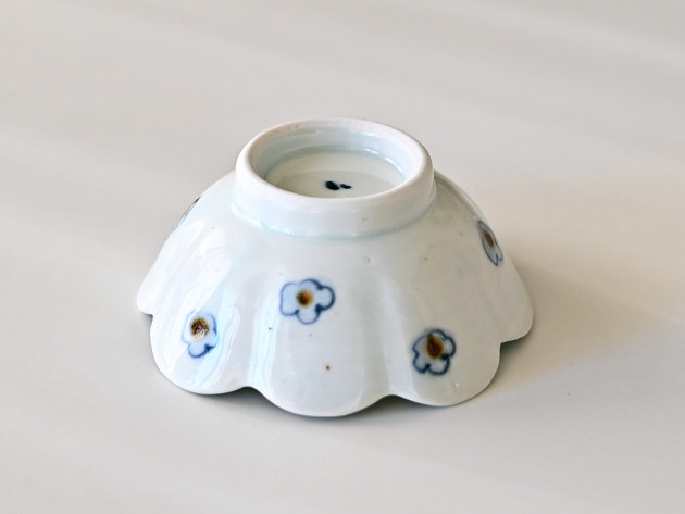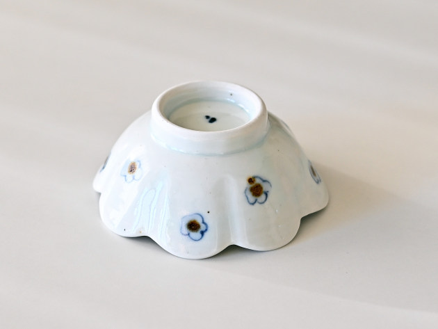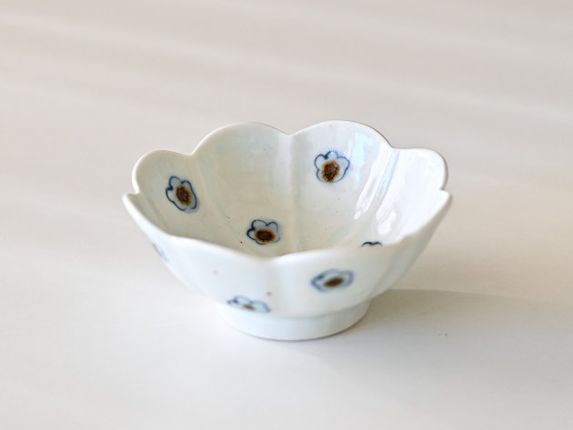 呉須と鉄絵で描かれた小花が、何とも可愛らしい輪花形の小鉢です。