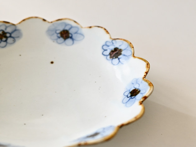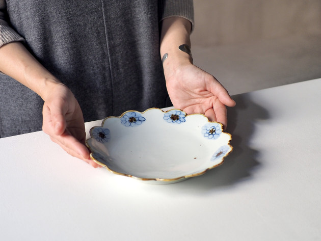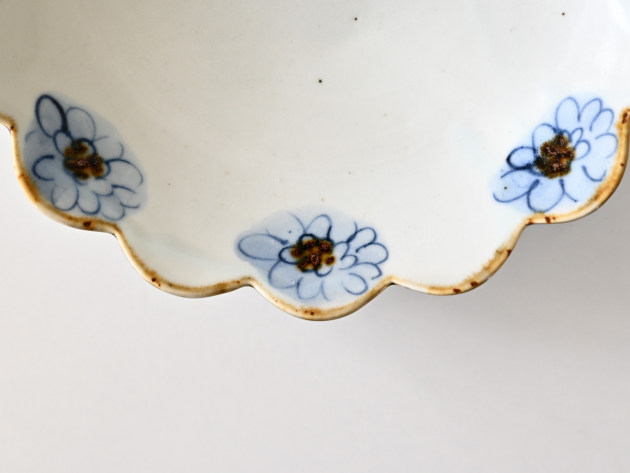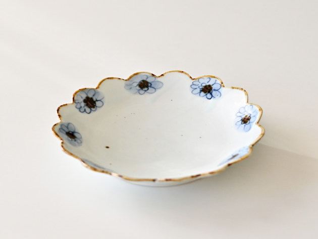 「輪花(りんか)」と呼ばれる、花の形をしたお皿です。さらに菊花文が描かれていて、とても華やか。