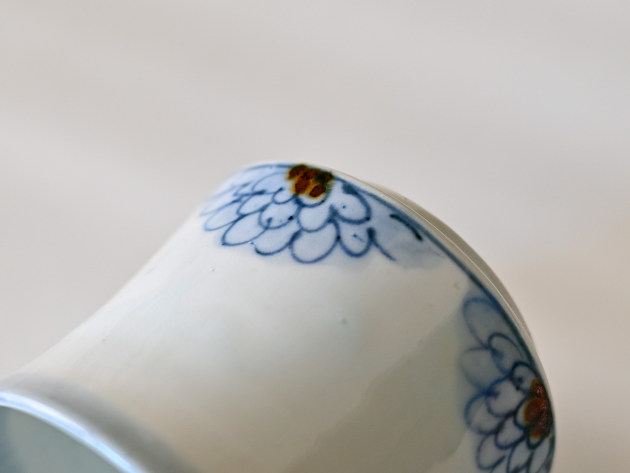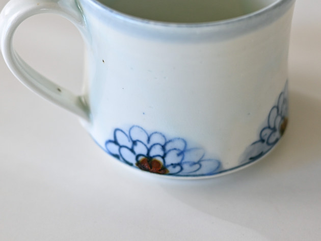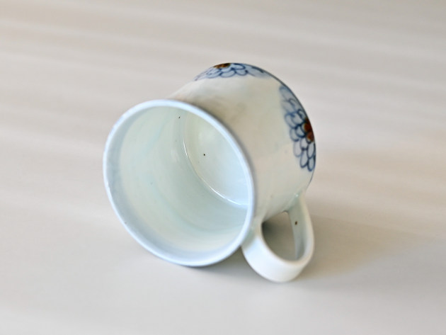 呉須と鉄絵で描かれた半菊文が、何とも可愛らしいマグカップです。安定感のあるフォルム。