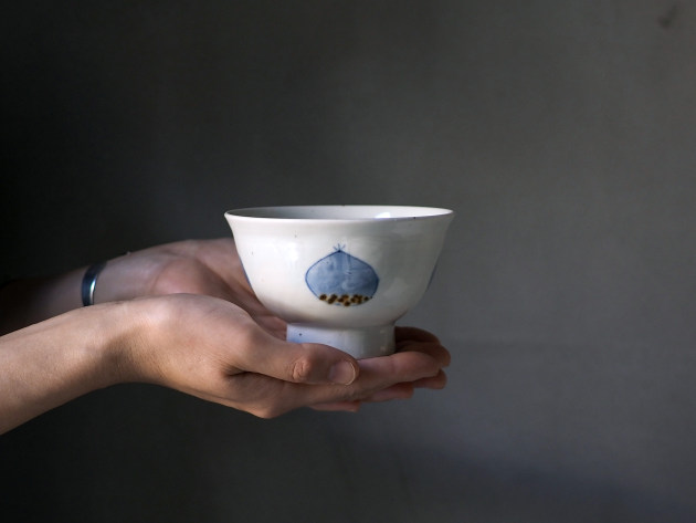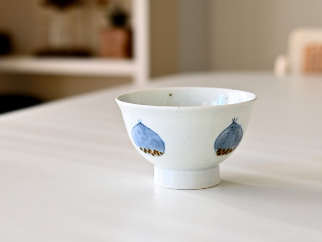 栗の文様が描かれた、素朴な飯碗。女性におすすめの、やや小ぶりなサイズです。