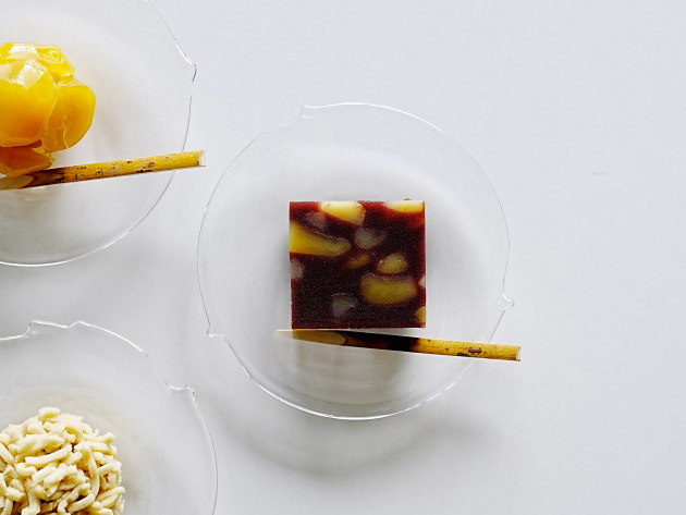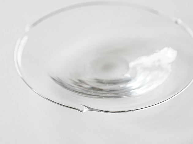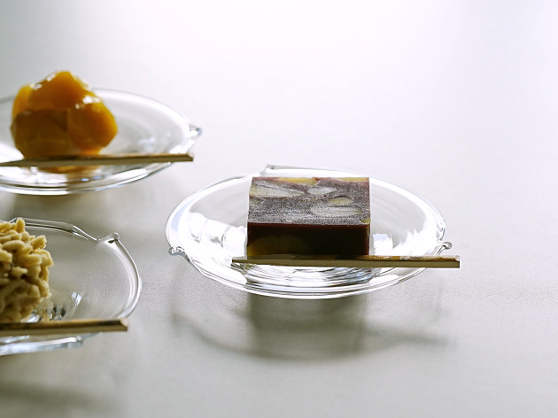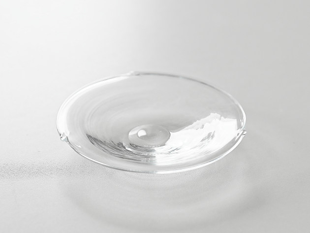 小さな突起がついたガラスの小皿。和菓子にもとてもよくあいます。