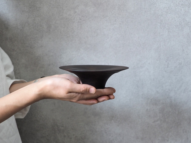 中央がほんの少しだけくぼんだ形。和菓子をのせると、とてもおさまりがいいです。