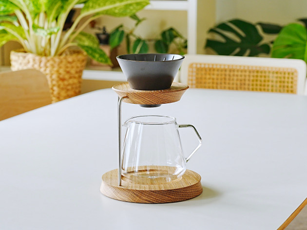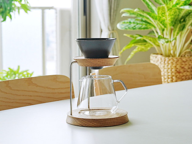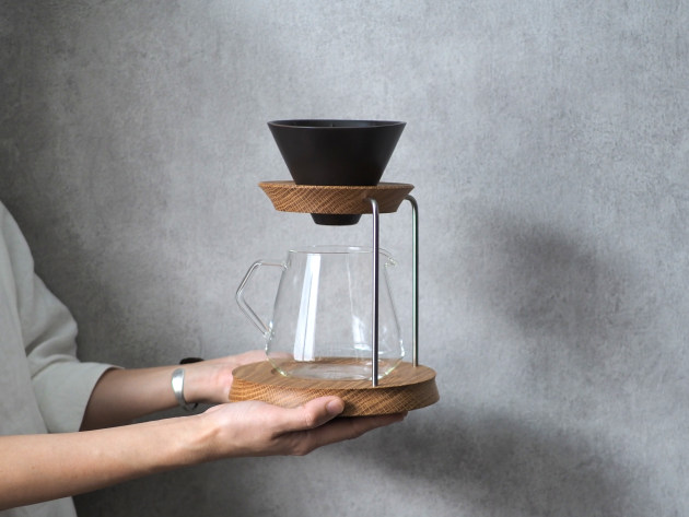 コーヒーを淹れる時間がより楽しくなりそうなブリュワースタンド。 木のあたたかみを生かしつつ、すっきりとしたデザインです。 「KINTO」の「ブリュワー4cups」と「コーヒーサーバー4cups」がセットになっています。 ■サイズ:(本体)径18.0cm×高さ18.3cm(ドリッパー込み)高さ23.5cm ※手作り、天然素材の為、色や木目がひとつずつ多少異なることをご了承下さい。