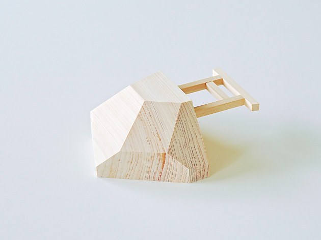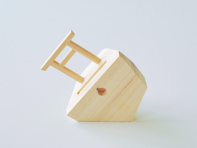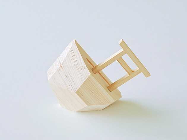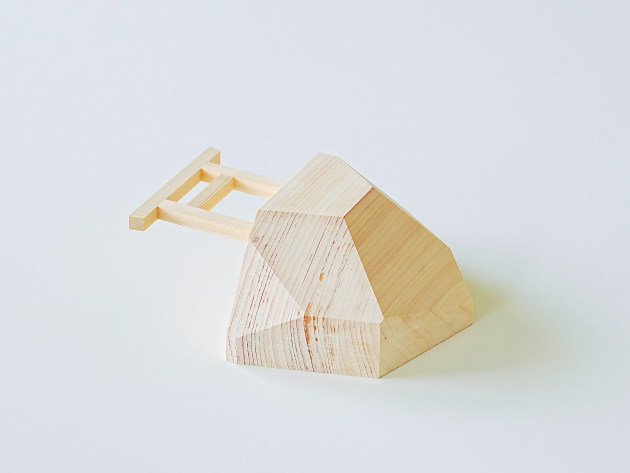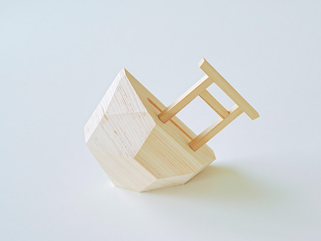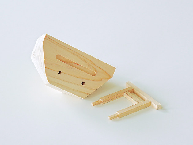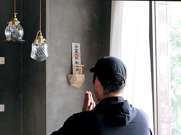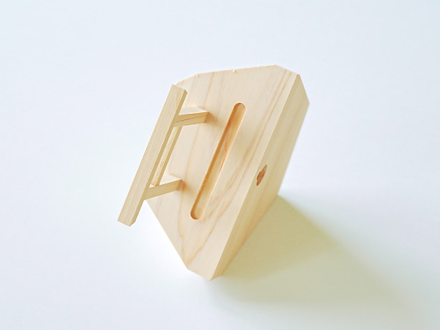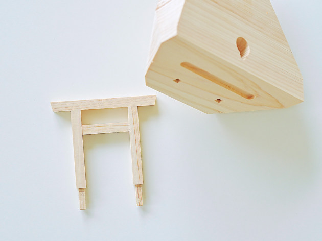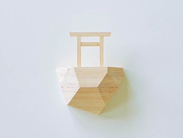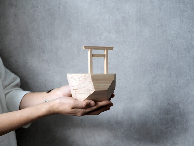 崖の上に立つ鳥居をイメージした、デザイン性の高い神棚。無塗装のヒノキです。