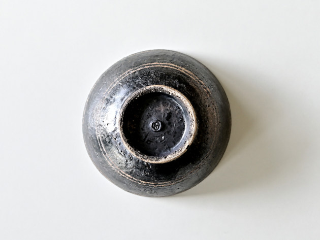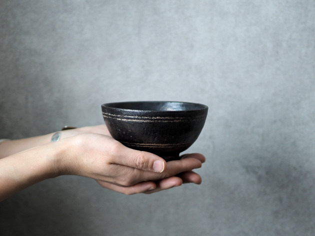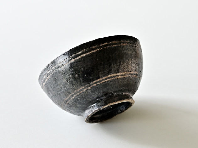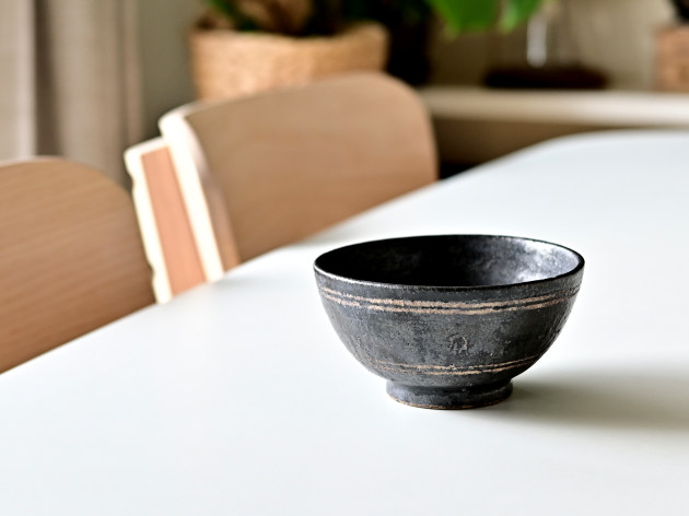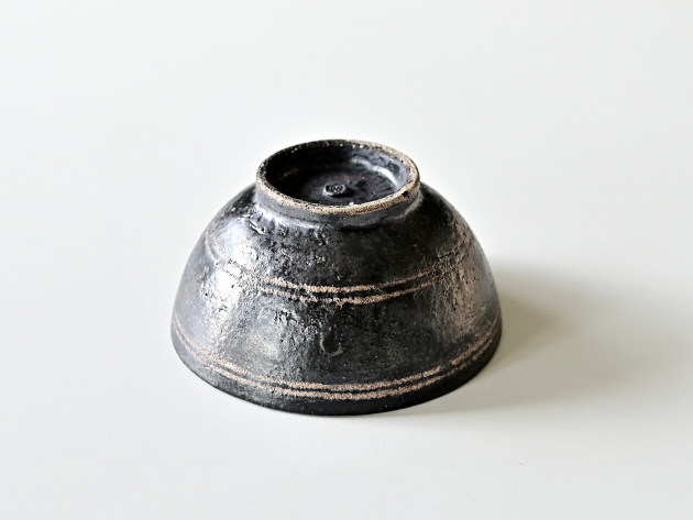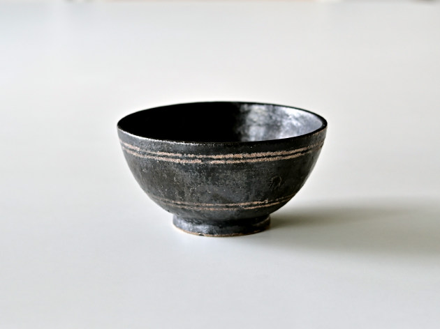 ロウ抜きと呼ばれる技法でラインを描いた飯碗。