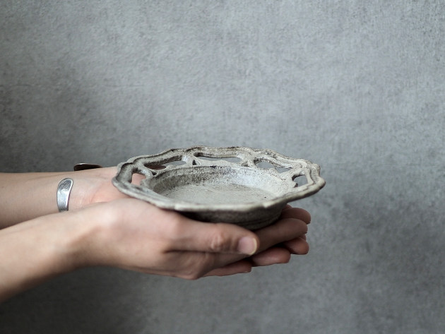 とても手間のかかる透かし彫りが施された、優雅な向付。