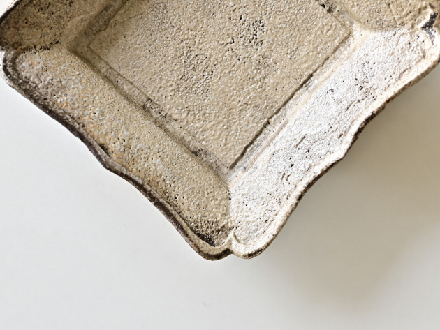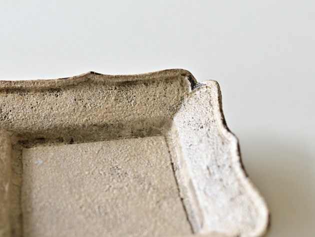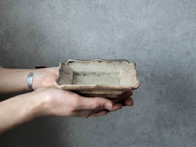 額縁のような形をした向付。とても繊細な仕事です。 和菓子にはもちろん、お料理にも。 化粧土を塗り、炭と一緒に焼成することで、味わい深い表情を作り出しています。 一枚ずつ発色が大きく異なることをご了承ください。 ごく小さく化粧土が剥がれ落ちている箇所がありますが、不良品ではありません。 ■サイズ:タテ12.5cm×ヨコ12.5cm×高さ3.3cm ※手作りの為、大きさ、形、色、模様がひとつずつ多少異なることをご了承下さい。